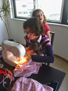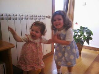Aqui o modelito da Matilde a condizer com o da mana que fiz na Páscoa (mas como é de manga comprida a Margarida não quis vestir)