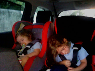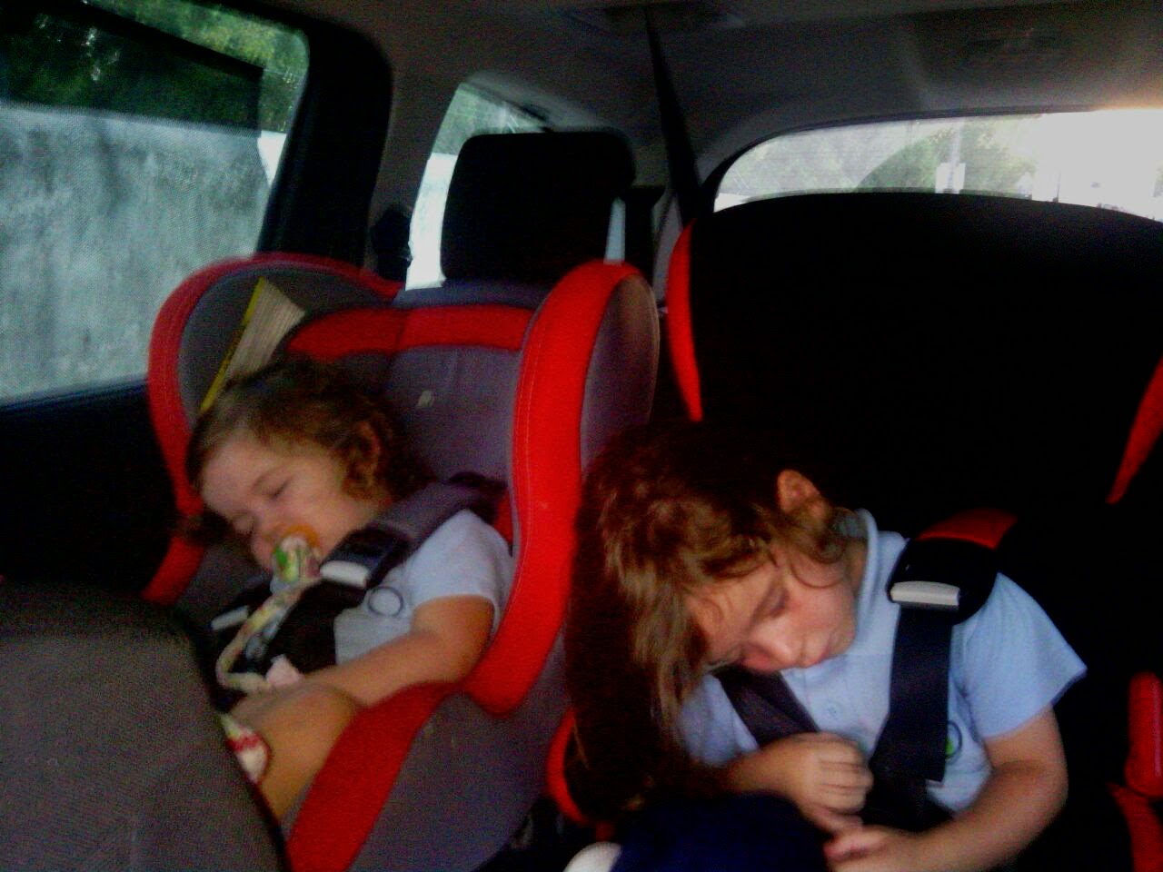 Para cabermos todos e mais as caixas tivémos de colocar a cadeirinha da Guigas no assento da bagageira (o nosso carro é daqueles de 7 lugares que se montam bancos no porta-bagagens).